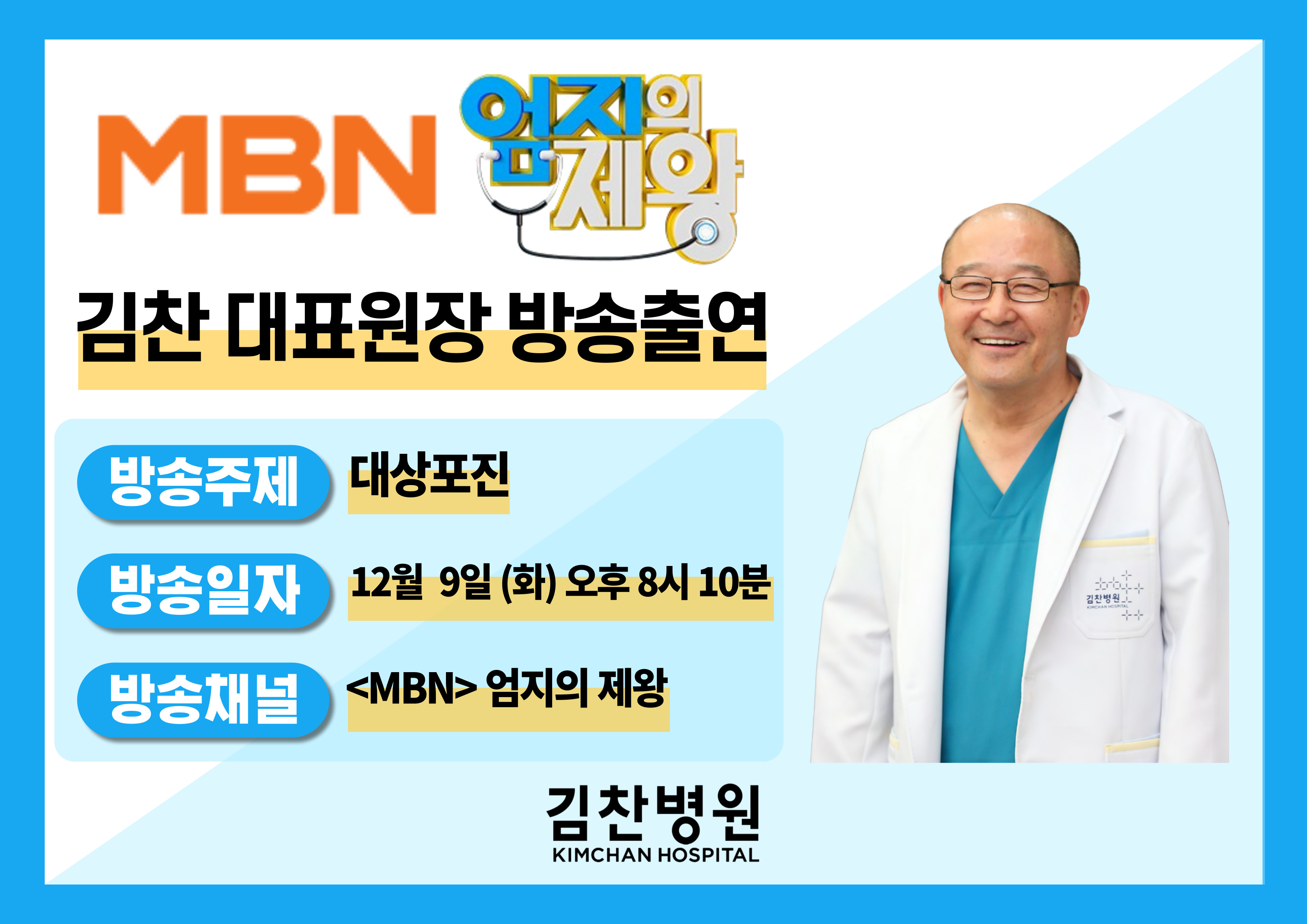 [방송안내] MBN <엄지의 제왕> 김찬 대표원장님 출연